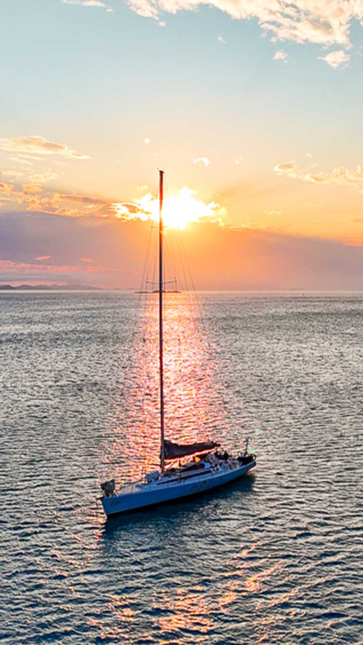 • Day 1: Meet your crew and fellow adventurers for a 2pm departure from Coral Sea Marina. Set sail towards the Whitsundays, arriving at one of our favourite beach locations for a hang, swim and to watch the sunset while grazing on some delicious snacks. Once back on board you will head to your overnight anchorage location where it’s time to enjoy dinner & dessert, get to know your new mates, have a few drinks, relax under the stars, and let the calm water gently rock you to sleep.